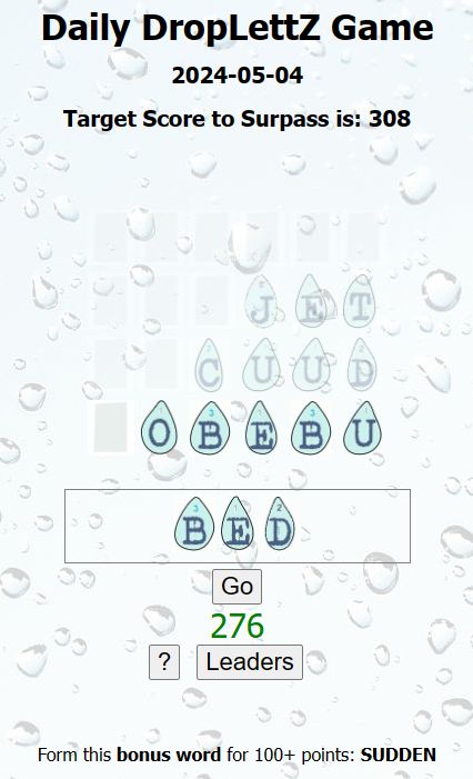 Four To Score is a dynamic word search game played on a 4x4 grid. Players stack letters to make and score four-letter words in any direction. As letters are stacked and unstacked, new words game be continually formed.