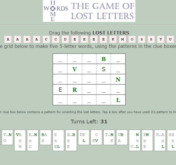 Print and Play solo game with 26 Scrabble or Bananagram tiles.