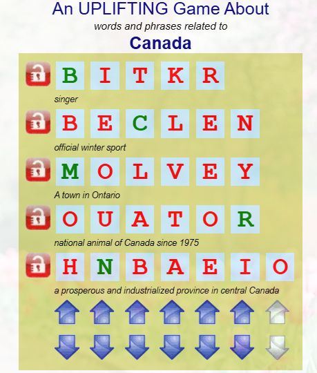 Each set of brainteasers comprises seven word puzzles, also called word squares. Move the myriad tetris-shaped pieces in various ways to form words. Each puzzle will reveal six 3-letter words downwards and across.