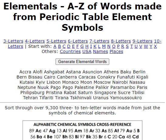 The Elementals Word Game is played within a wooden, laser-cut periodic table where you create words from chemical element symbols. About 17x12 inches by 1/4 inch, made from wooden hardboard. 118 tiles to make over 10,000 words "periodically". Make words using chemical symbols or just fit the elements into their symbolic locations. The game has 118 chemical symbol (letter fragments) to form words inside a 12x18 inch tray.