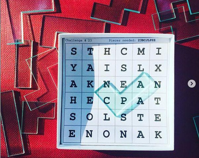 A series of brainteaser word games. Pieces fit in various ways but there is only one solution.
