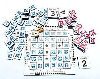 Two to four players (solitaire too) compete to make 3-letter words to control territory. Own three words in a row to score a point. Players combine a single letter A-Z with a two-letter bigram on the board to make a 3-letter word. Flip the tile over to point the arrow towards the player.
