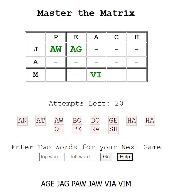 A Boggle-like word game where you try to find all the three-letter words hidden at your current location.