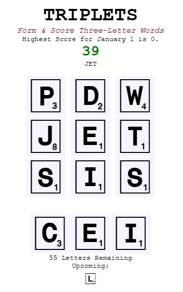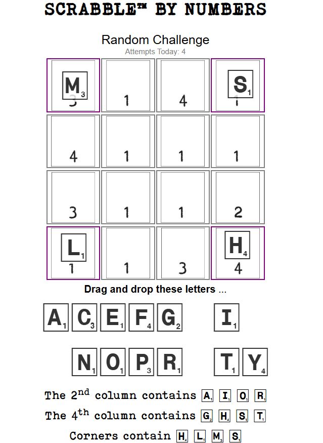 Print and Play solo game with 26 Scrabble or Bananagram tiles.